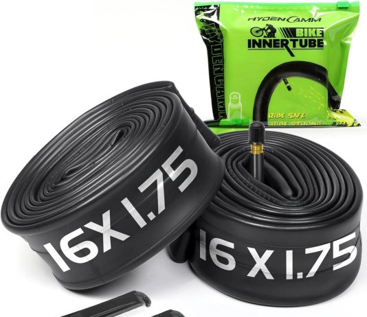 Review of 2 Pack 16x1.75-2.125 bicycle tubes with 32mm Schrader valve - reliable butyl spares, easy install with levers, good air retention for everyday rides.