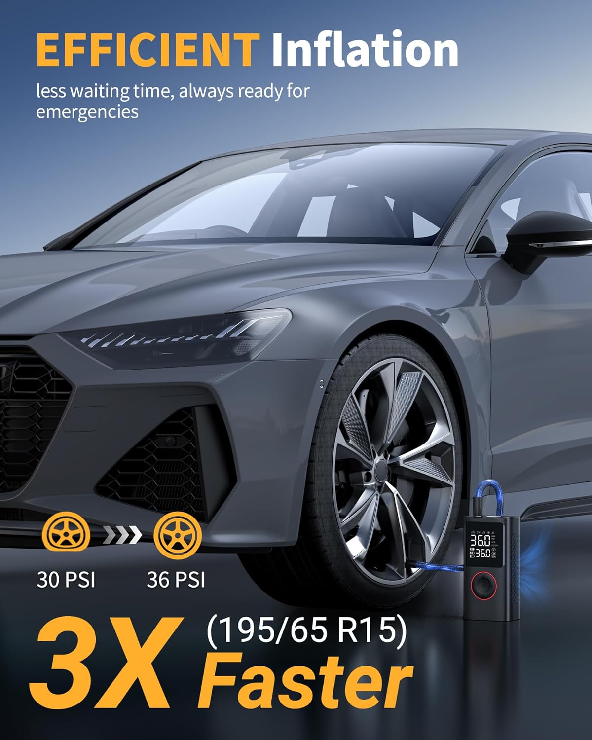 The motor and internal components are designed to deliver a high airflow; the claim of pumping a standard car tire from 30 to 36 PSI in less than a minute matched my quick tests for smaller pressure increases. When I needed to raise a tire from very low pressure to driving pressure, it took longer overall but still felt faster than many compact inflators I’ve used.